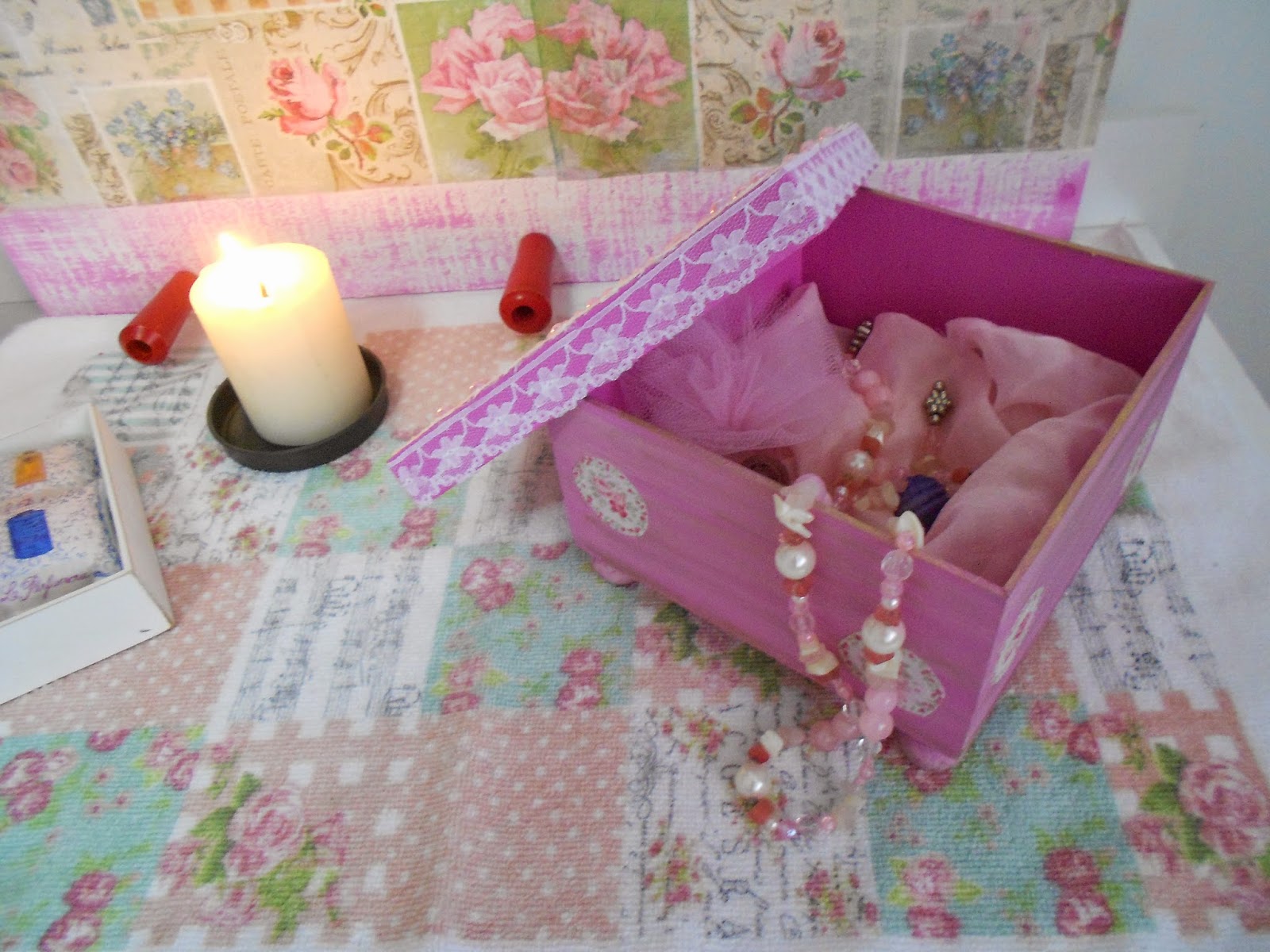 Nas imagens acima, cabideiro que fiz também com material achado na rua como essa tábua e esses pinos vermelhos que fizeram a vez de penduradores . Fiz decoupagem, pintei e colei aplique de resina . Ainda falta comprar ganchos pra pregar atrás para pendurar na parede. Também fiz a caixinha com aplicação de renda, pérolas, fiz os pezinhos com contas de madeira de um colar que desmanchou . Ou seja, a palavra de ordem é REAPROVEITAMENTO !